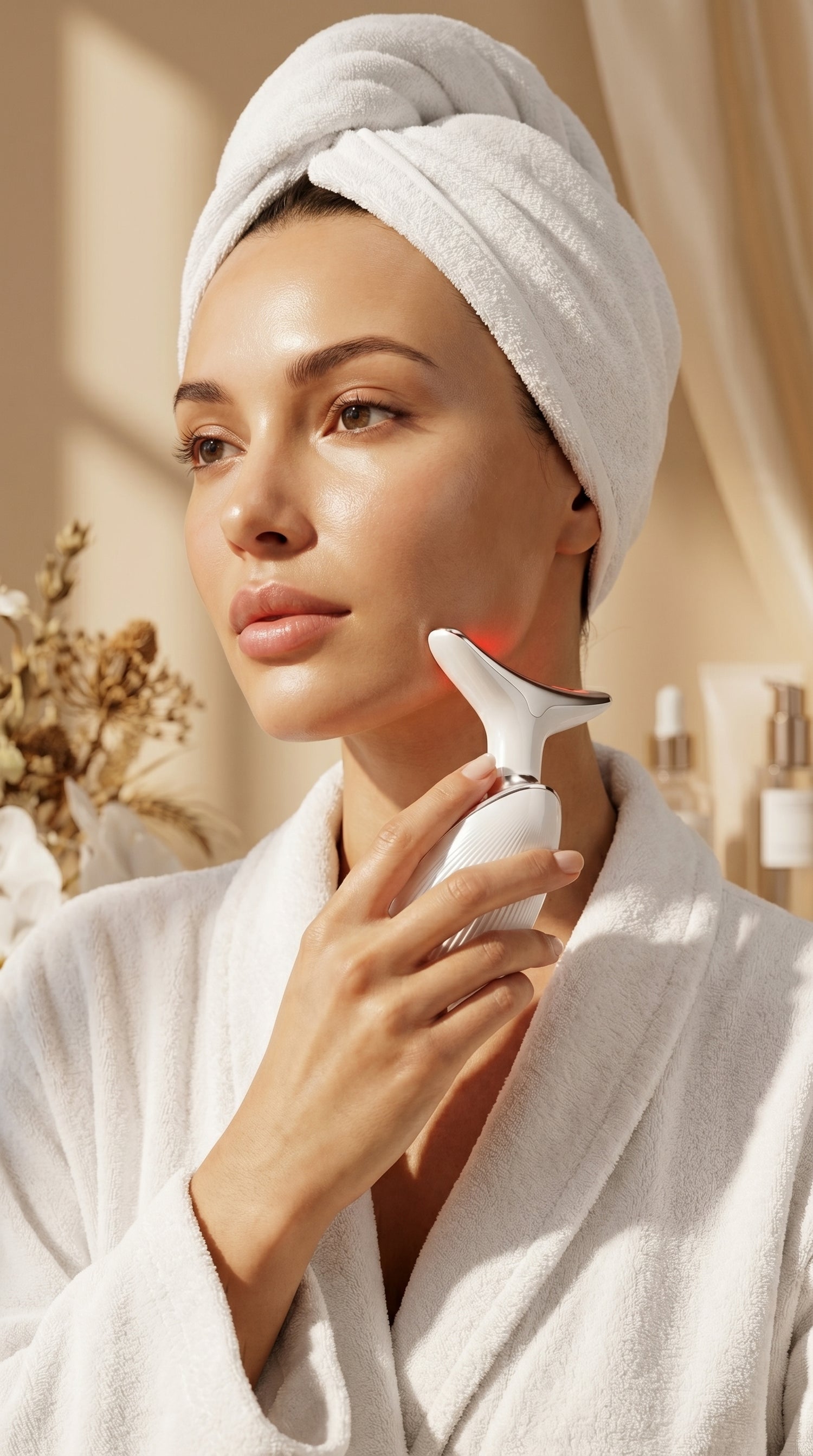 Un rituel technologique nouvelle génération réunissant 7 lumières LED dans un format compact et élégant, pensé pour sublimer votre routine beauté où que vous soyez.